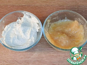 • 7. Вторая начинка у меня, густое яблочное повидло. Смешиваем повидло со взбитым яйцом (всего лишь 1 ст. л.) и крахмалом 0,5 ст. л..
