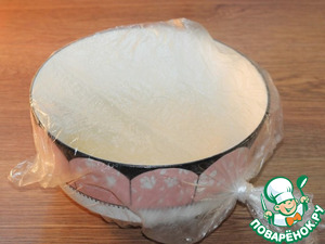 • 10. Включаем духовку на разогрев 180 С. Застилаем противень пекарской бумагой и смазываем холодным сливочным маслом.