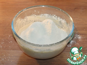 3. Просеиваем в жидкую смесь, вначале пшеничную муку и замешиваем тесто.