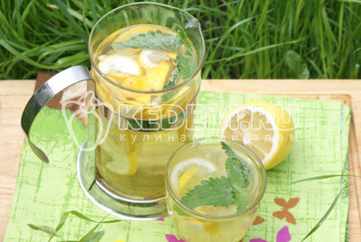 Домашний лимонад готов. Перелить лимонад в графин, по желанию добавить кубики льда и подавать в жаркий летний день.