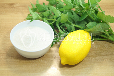 Чтобы приготовить домашний лимонад с лимоном и мятой, лимон нужно тщательно вымыть, подготовить сахар и промыть свежую мяту.