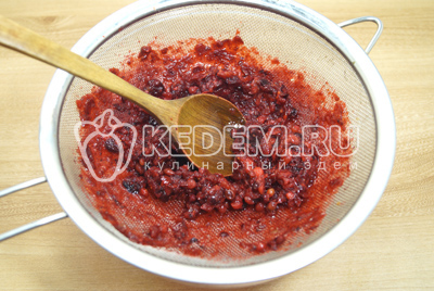 Размять ягоды через сито в миску.