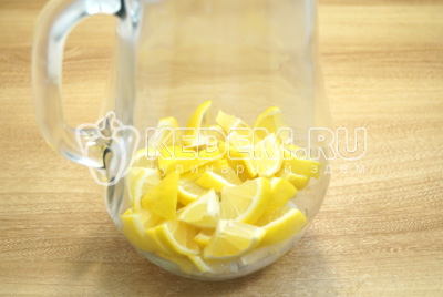 Нарезать лимоны ломтиками и сложить в кувшин.