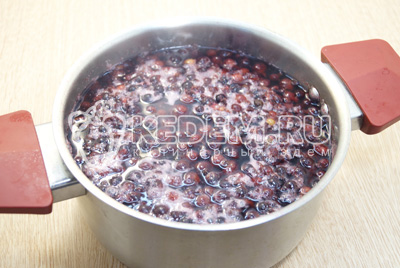 Выложить черную смородину в кастрюлю и залить холодной водой.