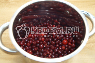 Для приготовления клюквенного морса необходимо разморозить ягоды клюквы. Выложить клюкву в кастрюлю и залить водой.