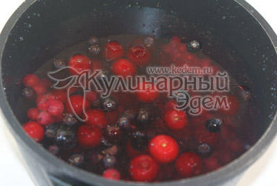 Ягоды выложить в кастрюлю, залить водой и поставить варить.