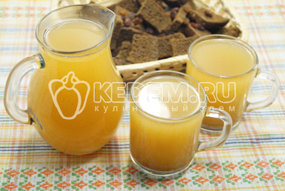 Процедить через мелкое сито в кувшин и остудить. Подавать квас холодным. Для хранения процеженный квас перелить в бутылки и хорошо закупорить.