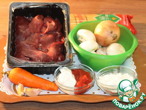Ингредиенты для «Куриная печень с грибами в соусе – кулинарный рецепт»: