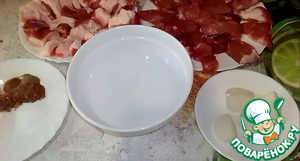Подготовьте все ингредиенты. Мясо, лук и грудинку нарежьте кусочками под горловину мясорубки.