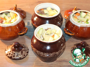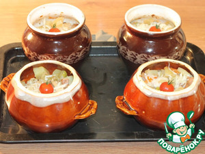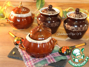11. Разлейте соус по горшочкам. Накройте горшочки крышками и поставьте в разогретую до 180 С °С духовку на 60 минут или до готовности блюда.
