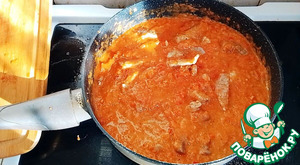 Рецепт «Мясо в томатном соусе на сковороде»: