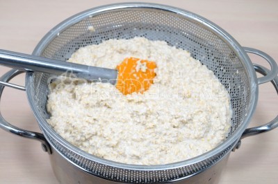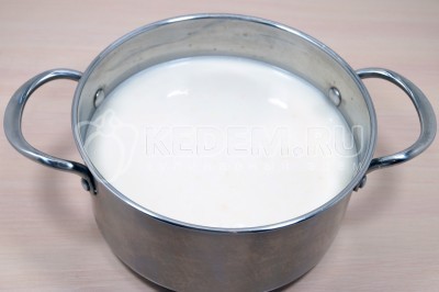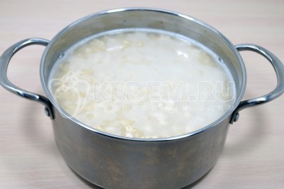 Выложить хлопья в кастрюлю и залить 2,5 литра воды. Оставить на ночь, накрыв полотенцем.