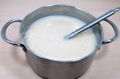 Поставить варить кисель, постоянно помешивая, и довести до кипения.