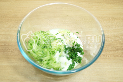 Добавить тертый на мелкой терке огурец и посолить.