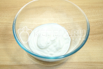 Выложить сметану в миску.
