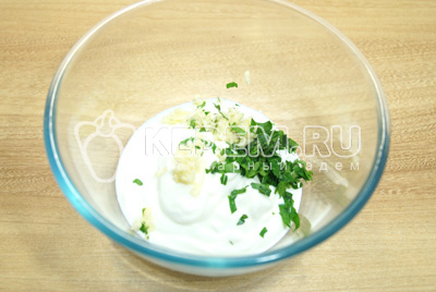 Добавить прессованный чеснок и мелко нашинкованную петрушку.