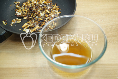 Мелко нашинкованный лук и мелко нарезанные (отжатые) грибы обжарить на сковороде с растительным маслом.