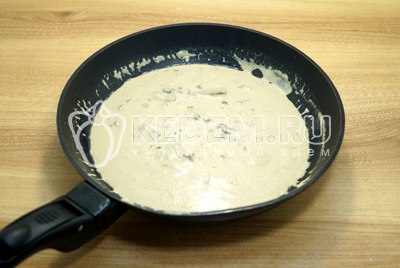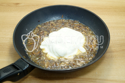 Добавить сметану, соль и перец.