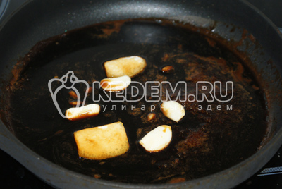 Чтобы приготовить соус терияки, в сотейник или в сковороду надо вылить соевый соус, добавить 2 зубчика чеснока разрезанных пополам, коричневый сахар, цедру лимона и щепотку сухого имбиря. Помешивая лопаткой, довести до кипения.