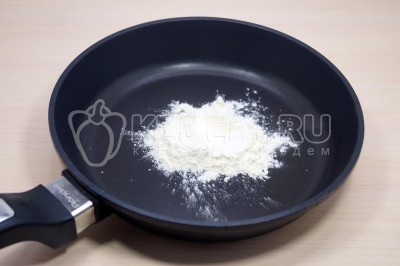 Чтобы приготовить сырный соус для макарон нужно на сухой сковороде обжарить 1 столовую ложку муки.