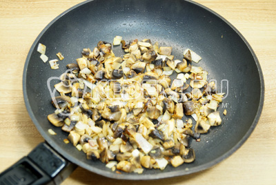 Мелко нашинковать грибы и лук, обжарить на сковороде с растительным маслом.