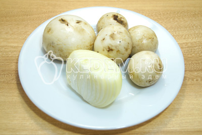 Грибы и лук очистить.