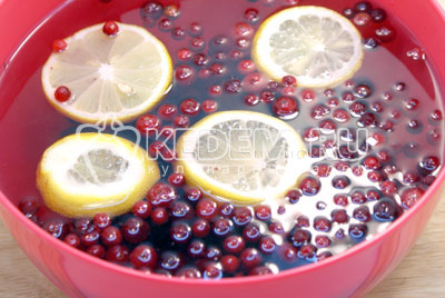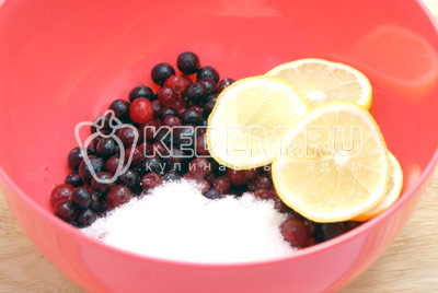 Добавить ломтиками нарезанный лимон и сахар.