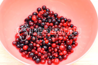 Замороженные ягоды заранее разморозить. Свежие ягоды хорошо промыть. Все ягоды выложить в миску.