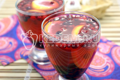 Готовый морс разлить по бокалам и подавать к столу.