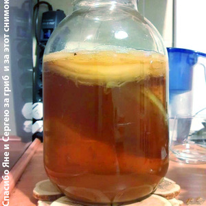 А здесь, в комментариях, ближе к весне, расскажу о похожем уксусе, но из концентрата красного виноградного сока. Он пока пока еще созревает. Напишу, даже если не получится.Между прочим: Комбуча — это освежающий, кисло-сладкий, почти безалкогольный напиток из сладкого чая с применением этого самого чайного гриба. Созревает всего за несколько дней. Вкус детства. Тогда ее называли просто ГРИБ.